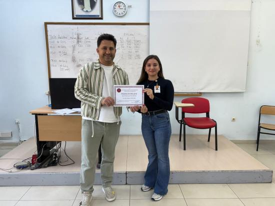 Doç. Dr. Ömer Çoban’ın yürüttüğü derste, öğrenciler Büşra Yamangil ve Mehmet Tosuner ile soru-cevap etkinliği gerçekleştirerek rehberlik mesleği, turistlerle çalışma deneyimi gibi konularında bilgi edinme fırsatı yakaladı. Etkinlik Doç. Dr. Ömer Çoban’ın Profesyonel Turist Rehberi Büşra Yamangil ve Mehmet Tosuner'e teşekkür belgesi takdim etmesiyle son buldu.